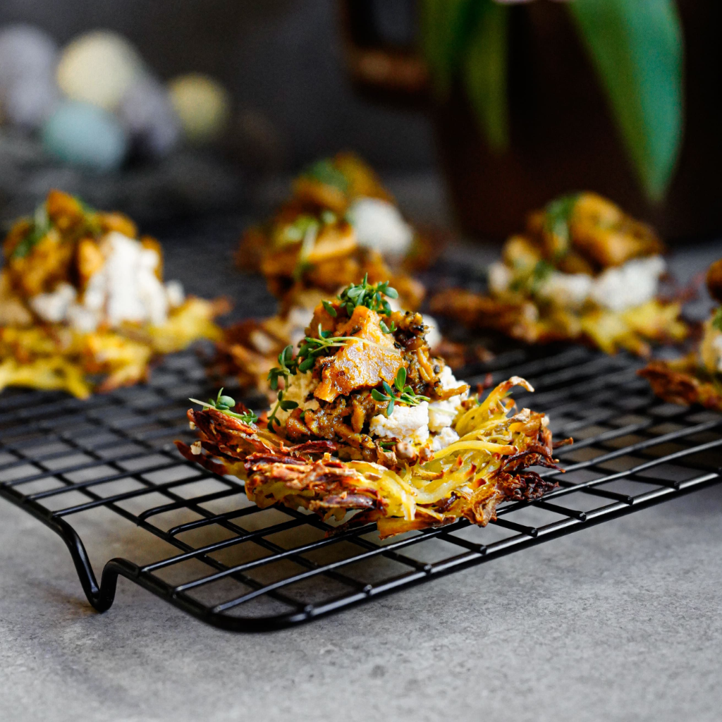 Nids de pommes de terre à la ricotta végane