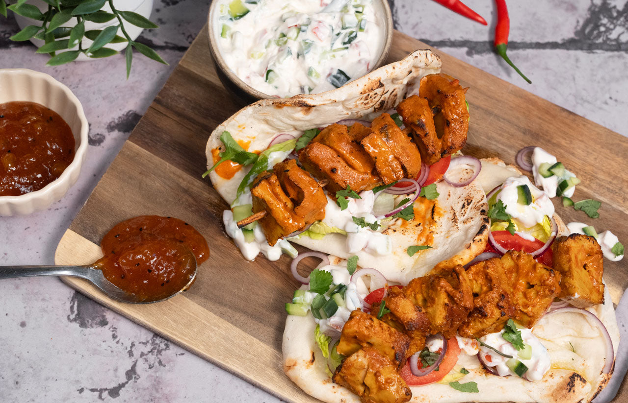 Naan Wrap avec des planted.émincé brochettes Tandoori